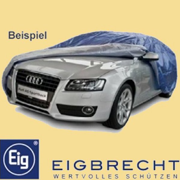 EIGBRECHT Auto-Pelerine Premium aus gewebeverstärkter Spezialfolie mit lackschonender, leicht geschäumter Unterseite. Kühl im Sommer, schnee- und eisfrei im Winter, schonend zum Lack. Absolut wasserdicht, temperaturbeständig von -30°C bis +80 °C und UV-stabilisiert.